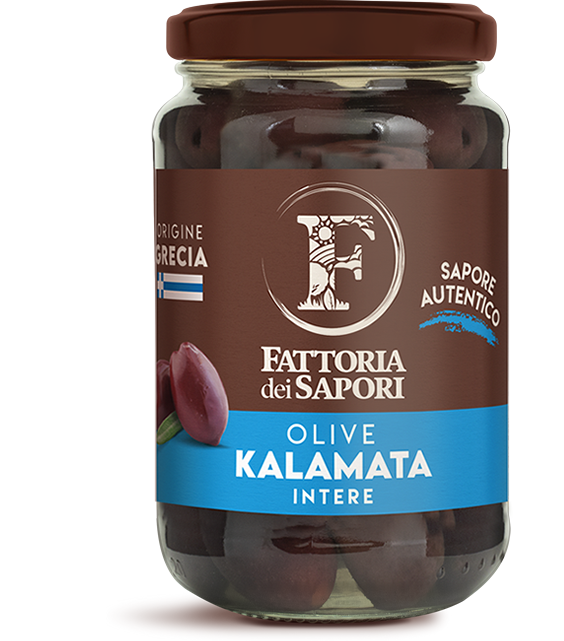 Olive di Kalamata, acqua, aceto di vino rosso, sale.