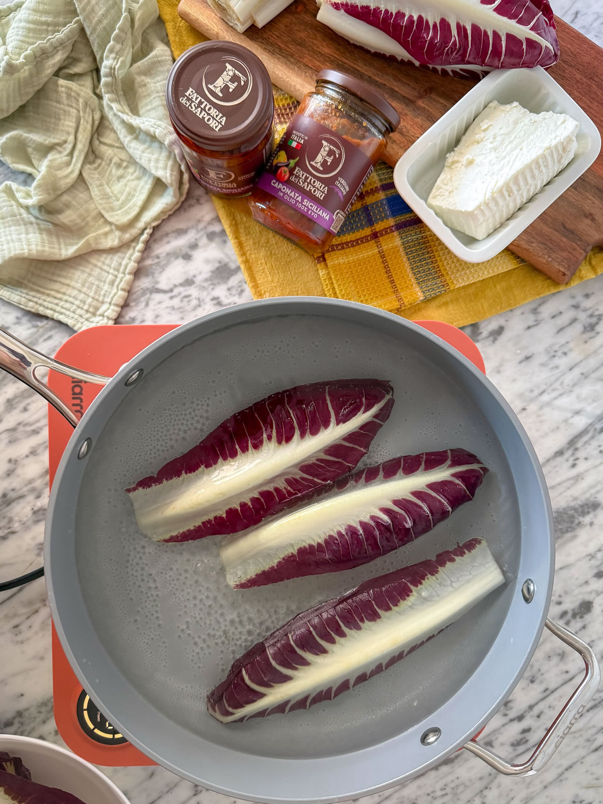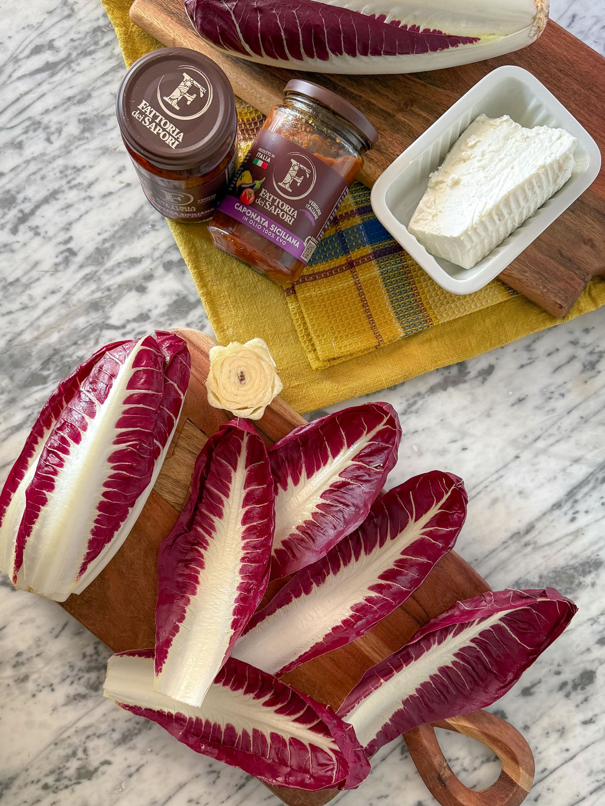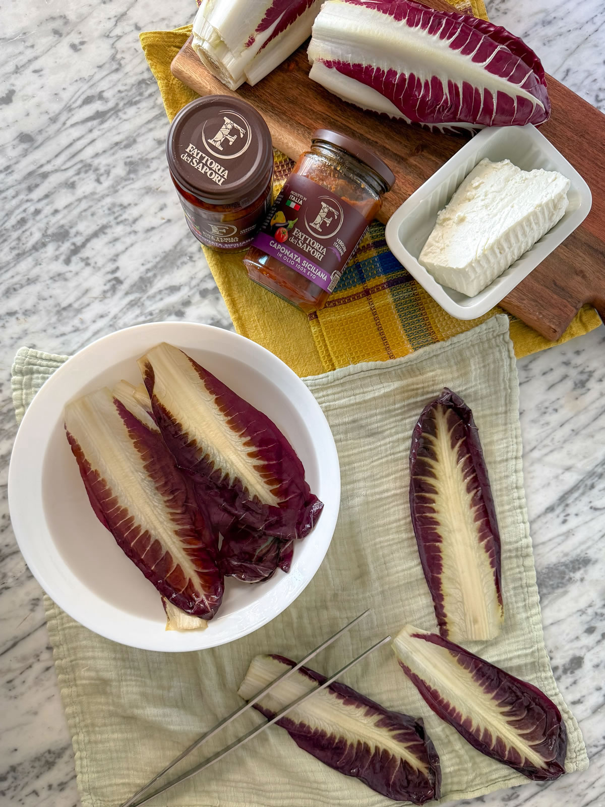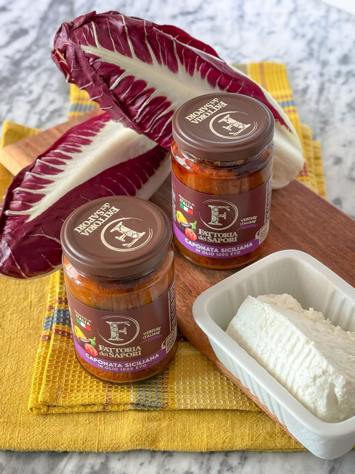 Le foglie di radicchio diventano l’involucro perfetto per accogliere un ripieno morbido di Caponata Siciliana e ricotta, da cuocere in forno per un risultato che conquista.