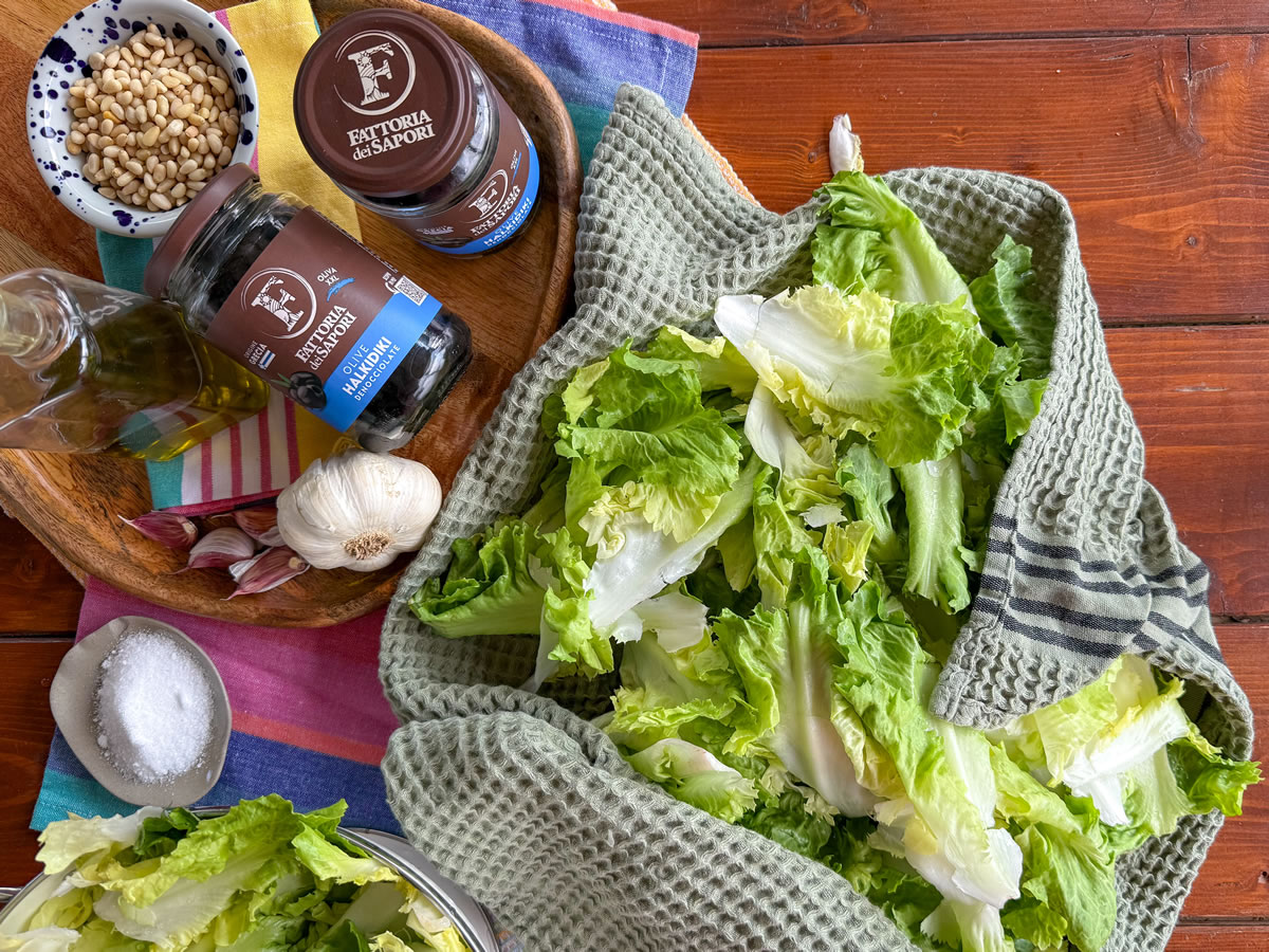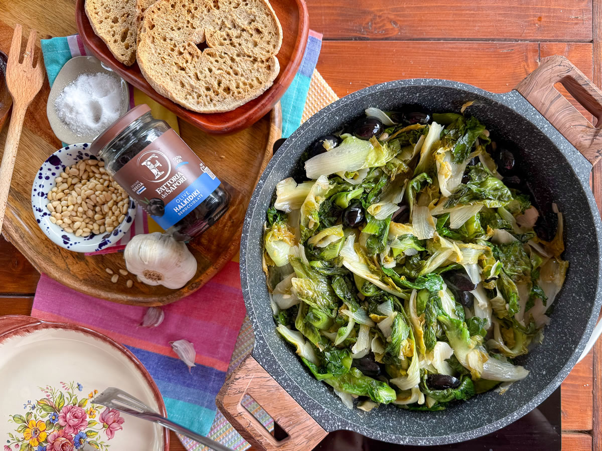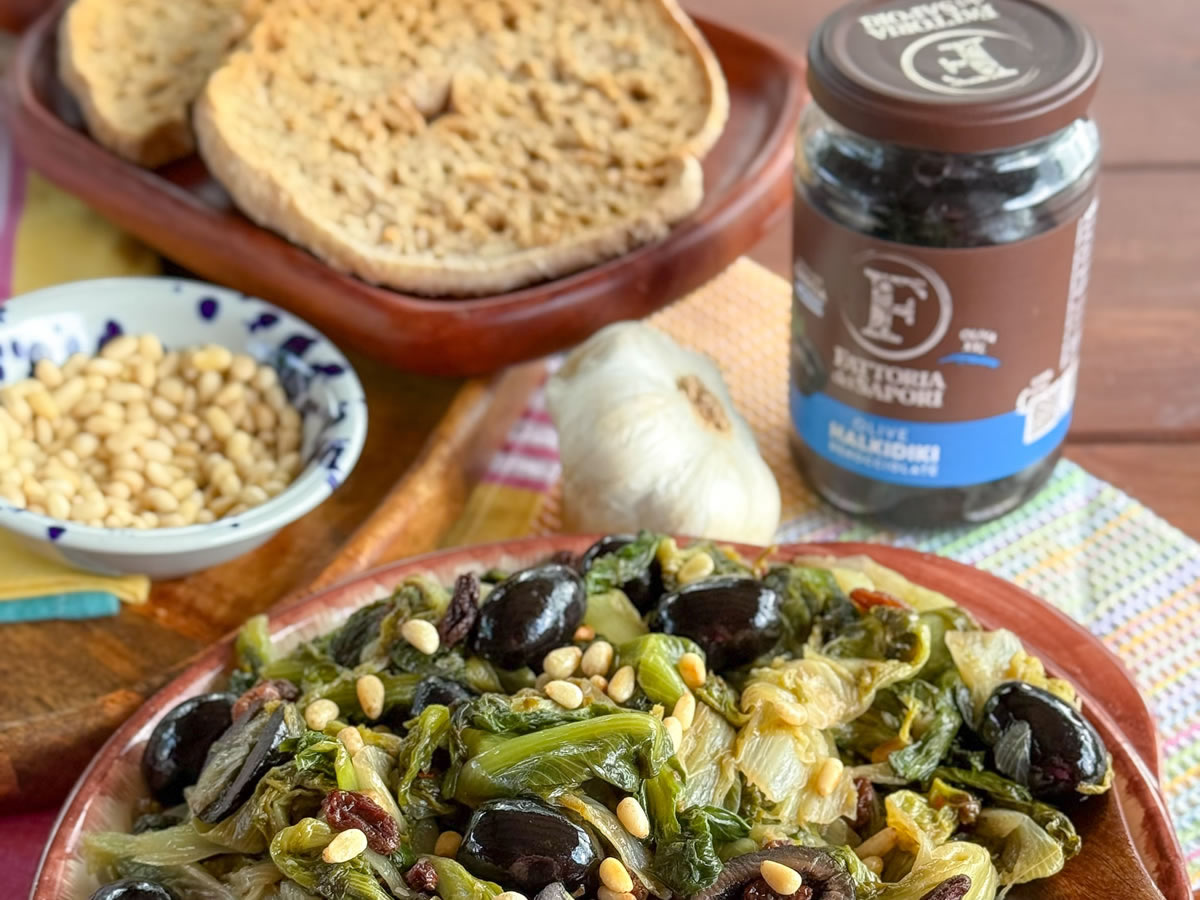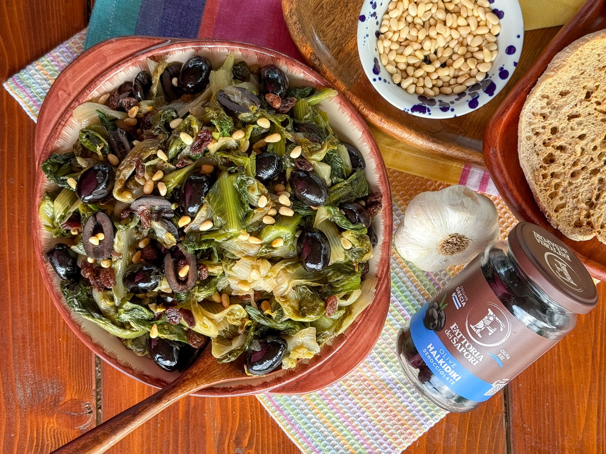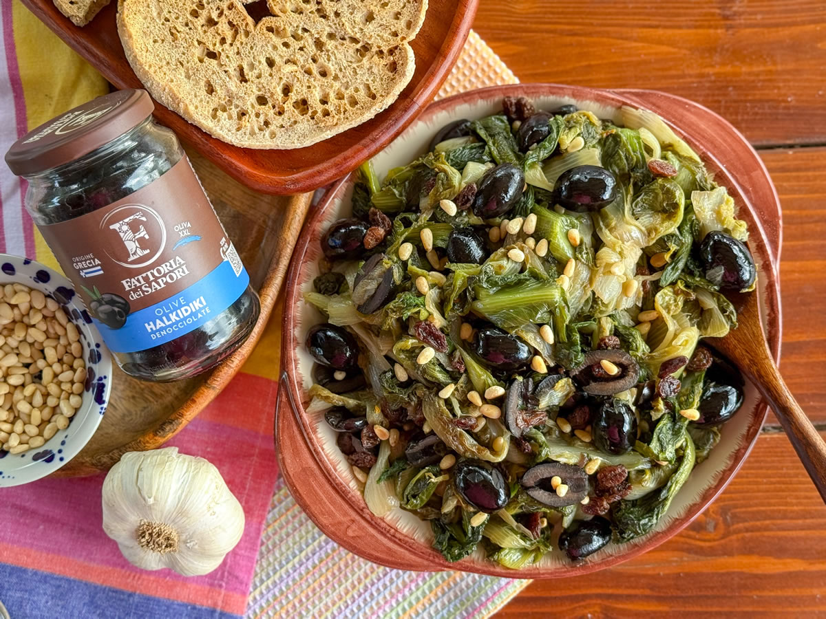Scarola con olive HALKIDIKI, uvetta e pinoli